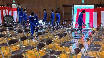 卒業式準備 投稿日時 : 2023/03/14 編集長 カテゴリ: 本日の午後は、卒業式準備でした。2年生は体育館で式場準備、1年生は校舎内や外の清掃とみんなが先輩のために、一生懸命にテキパキと取り組んでくれました。予定通り時間内に終わり、3年生を気持ちよく送る準備が整いました。ありがとうございました。
