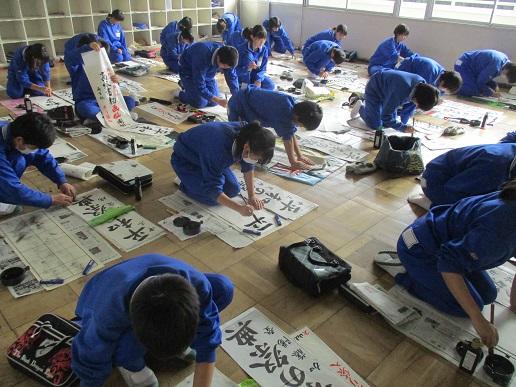 3年生国語、書き初めです。3年生の題は「平和の祭典」です。
