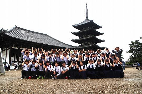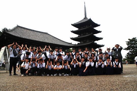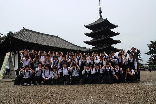 奈良駅に到着し、クラス写真を撮ってから、班別行動を行っています。