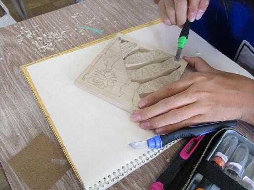 2年生美術です。欄間(らんま)の制作に取り組んでいます。