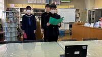 本日の始業式では、各学年から3学期の抱負が発表されました。女子バレー部の表彰もありました。