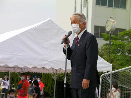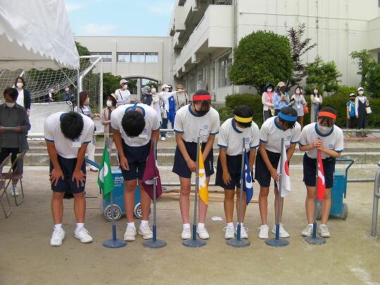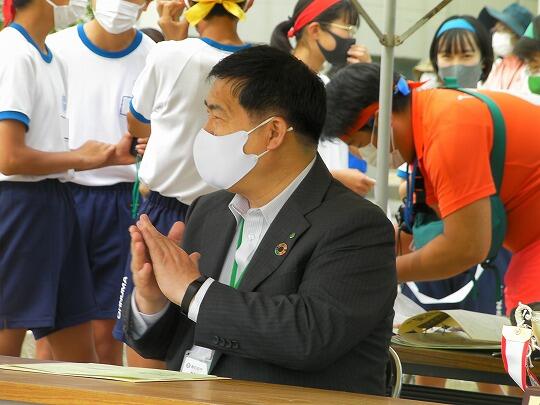 まず、朝の準備から3年生の全員リレーまでを画像で紹介します。本日お忙しい中、石川市長がお越し下さり、「沼中、fight!」と激励を頂いたり、鎌田教育長もお越し頂いたりしました。
