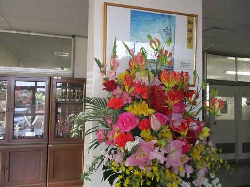 職員玄関です。先週行った卒業証書授与式の際、演壇上にあったお祝いの花です。この花を見ていると、卒業式の会場設営を少しずつすすめ、本番を迎えるまでの約2週間が懐かしく感じられます。時が過ぎることの儚さや、日常を大切に生きることの意味を改めて考えさせられました。