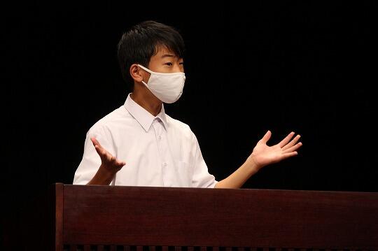 3年生の一人は「Mobile Phone and My Mother」という題で、スマホと母親の関係から、葛藤しながらも、母から、誰かを守るためには、断固とした厳しさも必要だと学んだことを、もう一人の3年生は「2100 Wether Forecast」という題名で2100年の未来の地球温暖化を懸念し、少しずつでも皆が地球温暖化しないために努力した結果、達成し、その感謝を伝える未来の天気予報を、2年生は「Learning Creates Dreams」という題名で、若い頃戦争を経験した現在80歳の祖母が、8年前、自分が小学校に入学するときに高校に入学して、現在大学4回生として学んでいる。その姿から「学ぶことは夢を想像すること」ということを、それぞれスピーチしました。(実は英語が苦手なので、内容に誤りがあったら申し訳ありません)