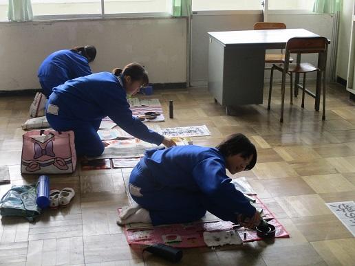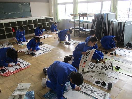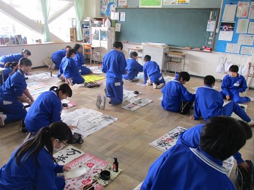2年生国語、書き初めの練習です。