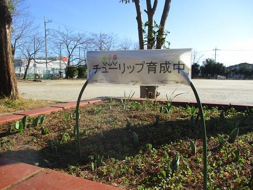 正門を入ってから昇降口に向かうまでにある花壇です。かわいらしいクロッカスが咲いています。