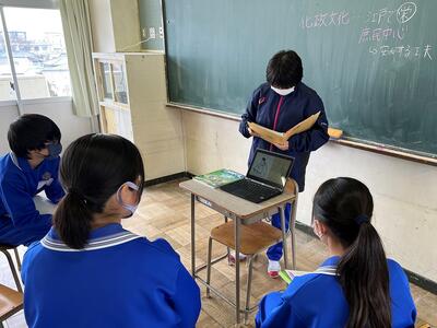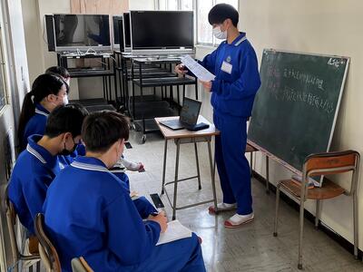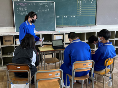 2年生の社会では、生徒が先生役で授業を行っていました。いつも以上に真剣に楽しく授業に取り組んでいたように見えました。