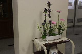 本日夕方から華道部の生徒の活けた活け花でお客様をお迎えしています。