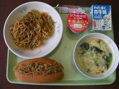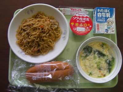 コッペパン、焼きそば、牛乳、洋風かきたまスープ、ヨーグルトでした。