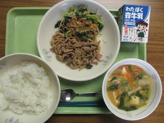 ピリ辛みそ丼(麦ごはん、具)、牛乳、けんちん汁でした。