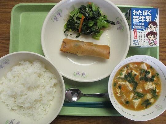 ごはん、牛乳、春巻き、華風和え、麻婆豆腐でした。