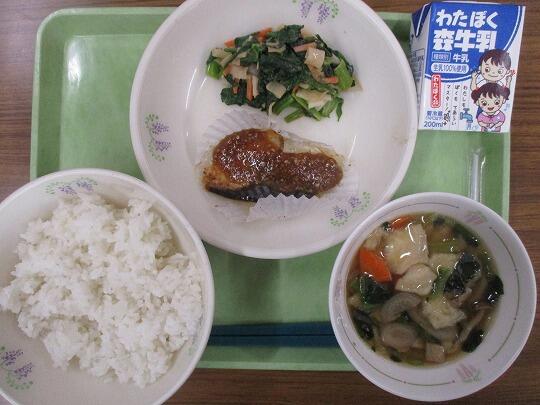 ごはん、牛乳、さばのみそ焼き、かんぴょうの和え物、せんべい汁でした。