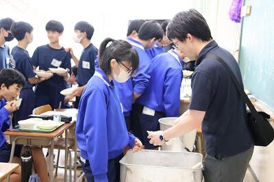 6月17日(火)メキシコ風ピラフ、ミートソース、牛乳、梨とにんじんのドレッシングサラダ【食育の日の献立】