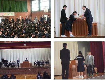 生徒の皆さんの話を聞く態度も立派であり、離任された先生方は、最後となる皆さんの心のこもった校歌に感動されていました。