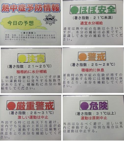 大沼中学校保健室前には、熱中症予防情報が掲示されています。毎日熱中症の予想情報が張り出されます。「ほぼ安全」「注意」「警戒」「厳重警戒」「危険」の5段階です。これからの季節は熱中症予防のための対策を取らなければなりませんね。熱中症予防情報の活用をお願いします。