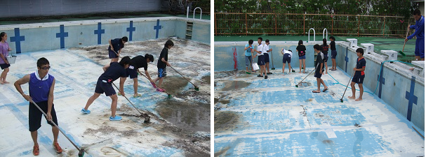 学校のプール清掃前に、水抜き後の泥水の放射能測定を行いました。プール内の数ヶ所で測定を行い、安全を確認しました。(6月7日(火)8:30~9:00 天候:晴 微風 プール内汚泥と水たまり)これを受けて、6月9日(木)、13日(月)にプール清掃を行いました。今年も安全第一で水泳指導を行ってまいります。保護者の皆様のご協力をお願いいたします。