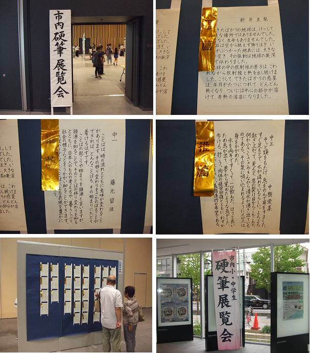 18日(土)、19日(日)市内硬筆展が春日部市ふれあいキューブを会場として開催されました。大沼中からは、36作品が出品され、推薦賞となった1年生の藤元留佳君、2年生の新井友梨さん、3年生中務愛菜さんの作品が中央展に出品されることになりました。おめでとうございます。