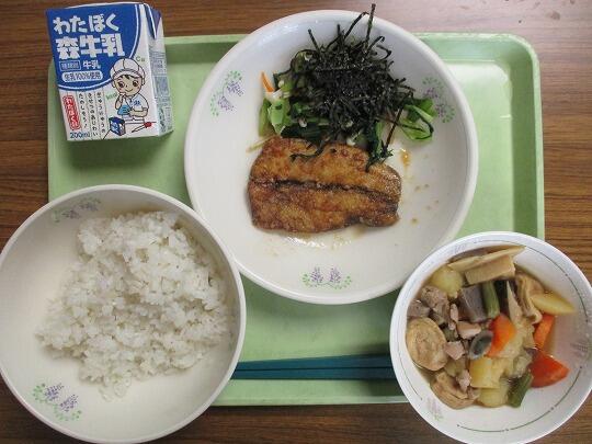 ごはん、牛乳、いわしのかば焼き、磯香和え、筑前煮でした。