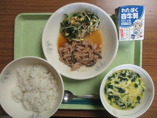 わかめごはん、牛乳、鶏肉の唐揚げ、ごま酢和え、みそ汁でした。