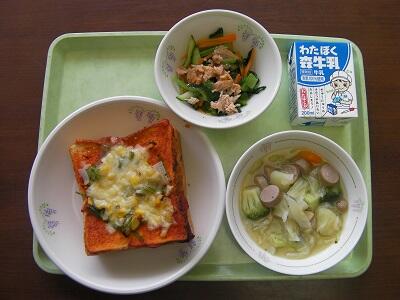 ピザトースト、牛乳、ツナサラダ、彩の国ポトフでした。