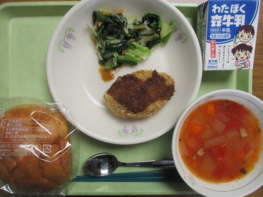 メロンパン、牛乳、ライスグラタン、コーンサラダ、レンフォアタンでした。