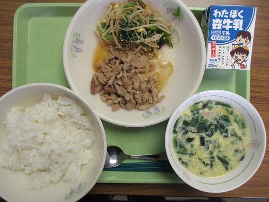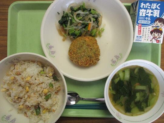 チャーハン、牛乳、はんぺんフライ、春雨サラダ、チンゲン菜のスープでした。