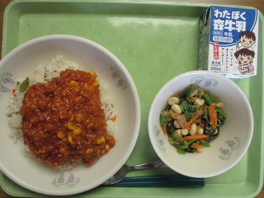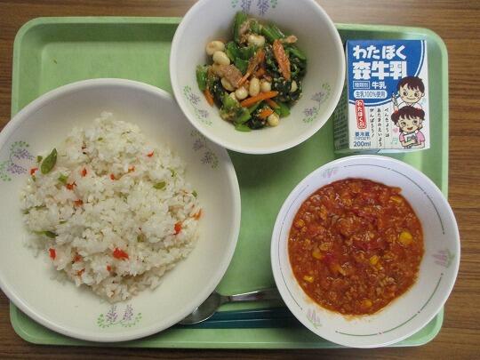 メキシコ風ピラフ(ごはん、ソース)、牛乳、ビーンズサラダでした。