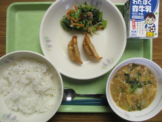 ごはん、牛乳、揚げ餃子、華風和え、マーボー豆腐でした。