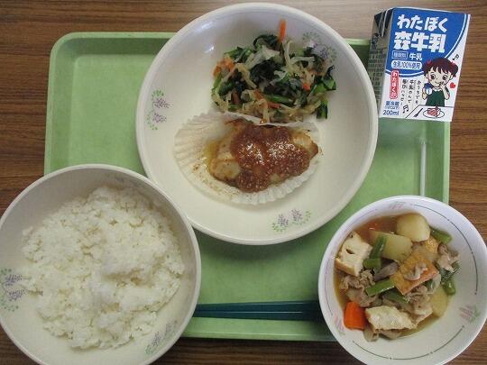 ごはん、牛乳、さばのみそ焼き、切り干し大根の和え物、肉じゃがでした。