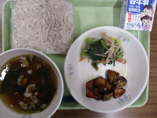 ごはん、牛乳、いかのオイスターソース焼き、華風和え、ジャージャン豆腐でした。