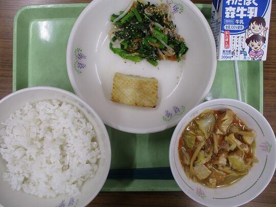 ごはん、牛乳、さばのみそ焼き、かんぴょうの和え物、せんべい汁でした。