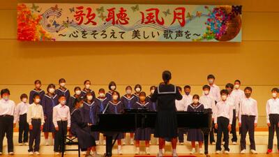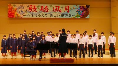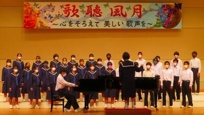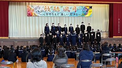 過日行われた本校の合唱祭のスローガンは『歌聴風月(かちょうふうげつ) ~心をそろえて 美しい歌声を~』でした。そのスローガン通り、仲間と心をそろえた美しい歌声がホールに響き渡りました。