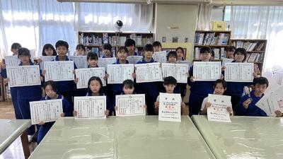 本日、オンラインによる表彰朝会が行われました。美術展と新人戦県大会の表彰が行われました。本日もたくさんの生徒が表彰されました。おめでとうございます。