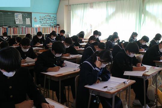 本日、3年生は期末テスト2日目でした。これが終わったら、これから、本格的な受験勉強に入っていきます。入試まであと少し、悔いを残さず、目標に向かって、頑張ってください。
