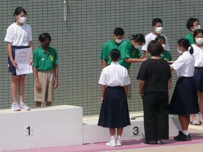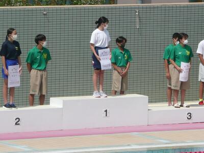 7月24日(日)に、学校総合体育大会県大会水泳3日目最終日が、川口市青木町公園総合運動場プールで行われました。男子100m背泳ぎ、男子200m個人メドレー、女子100m平泳ぎは、惜しくも決勝には進むことはできませんでしたが、女子400m自由形では、決勝に進み、見事3位となり、800mに続き、関東大会出場を決めました。全国標準記録まであと少しでした。