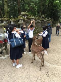 奈良公園で班別行動をしています。
