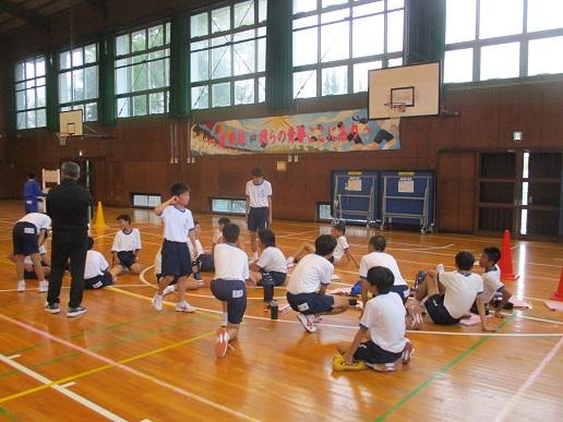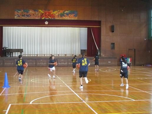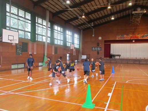女子バスケットボール部です。こちらも元気のいい挨拶が気持ちいいです。ドリブルでボールを保持しながら、他の選手にかかわっていく練習をしていました。