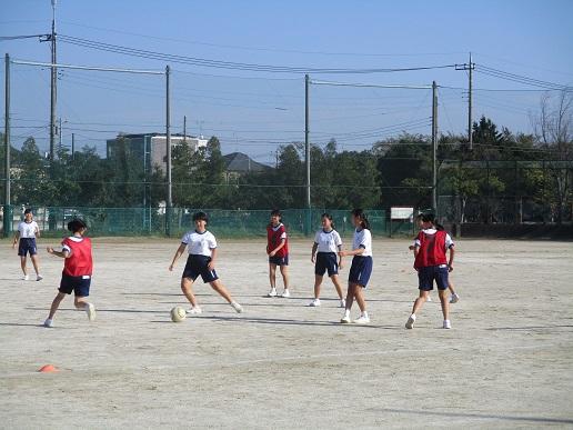 今日の5時間目、3年生の保健体育では球技を行っていました。秋らしい好天の下、友人と楽しそうに取り組んでいます。次の時間からは武道(剣道、柔道)、ダンスから選択して取り組む授業になるとのことです。