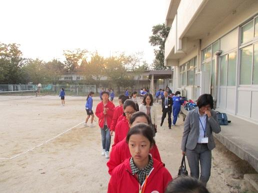 本日の16時頃、中国から張家港市曁陽(チーヤン)実験小学校の5年生17名が、引率の先生方と共に大沼中に来校し、部活動の様子等を見学しました。美術室では美術部の生徒が描いた作品や、修学旅行のアルバム等を興味深く見ていました。調理室の前を通った際は、教室内にガスコンロがあるのを見て、「私たちの学校にはない」と驚いていました。剣道部で一緒に写真を撮ったり、校庭で駅伝メンバーの後ろを走ったりと、短い時間でしたが日本の中学校生活を楽しく見学できました。