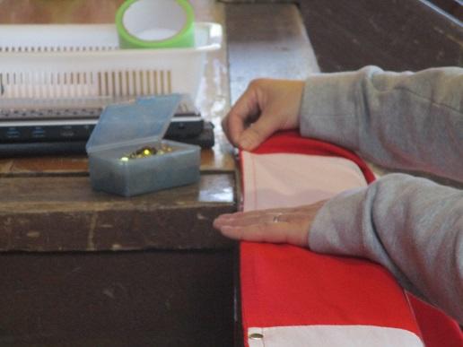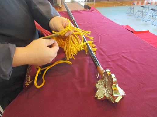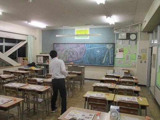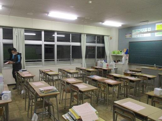 3月12日木曜日の午後です。3年生が下校した後、先生方が卒業式の会場設営を行っています。明日をよき日にするために、力を合わせて準備しています。