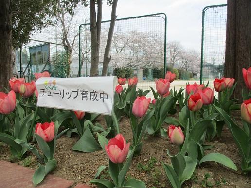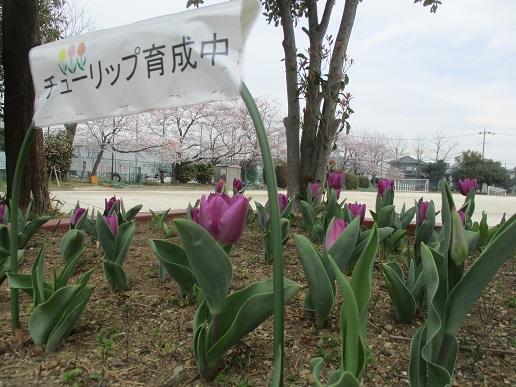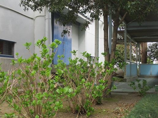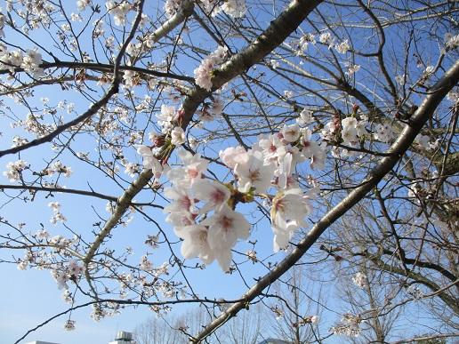 3月27日金曜日です。あたたかい陽気に誘われ、校庭の花々が咲き誇っています。正門付近や技術室前の桜は見事な満開、昇降口前のフジには大きな花芽が見えます。体育館通路付近ではアジサイの鮮やかな葉が出てきました。