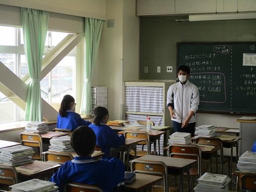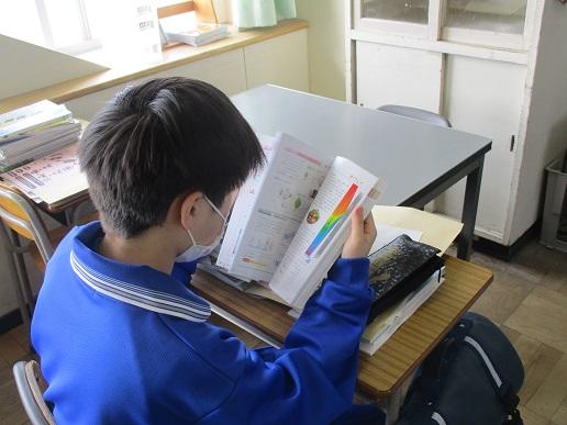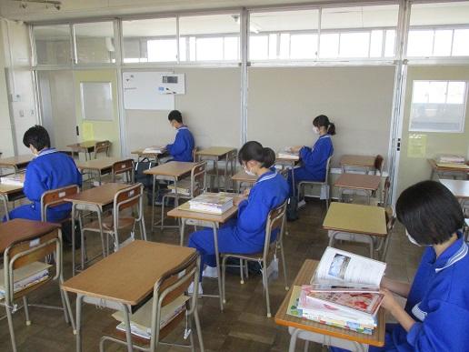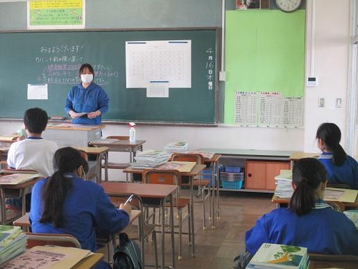 4月15日水曜日です。今日は教科書等配布のため、2年生が登校しました。保健関係書類を提出したり、配布された教科書の乱丁等がないか、確認をしました。
