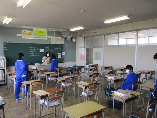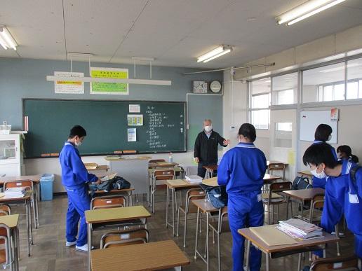 4月8日水曜日、今朝の様子です。2年生・3年生が登校しました。各教室で始業式式辞を放送で聞き、学活、下校となります。本日午後は入学式を予定通り実施いたします。