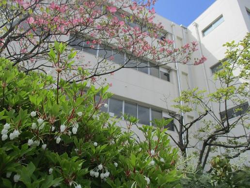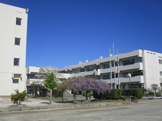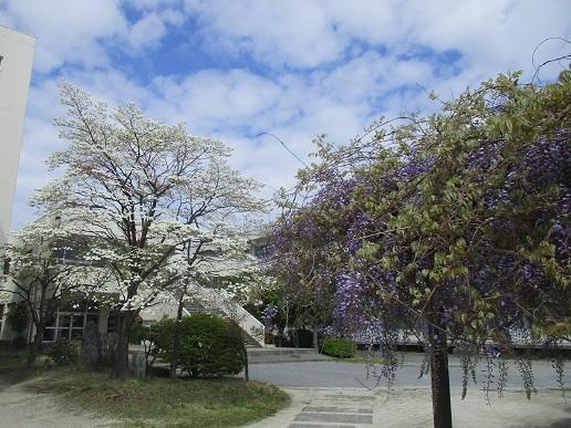 4月24日金曜日です。2月の下旬に植えた学校ファームのじゃがいもが順調に育っています。先日は先生方が雑草を抜いたり、芽かきをしていました。校地内のハナミズキ、ドウダンツツジ、フジがきれいに咲いています。