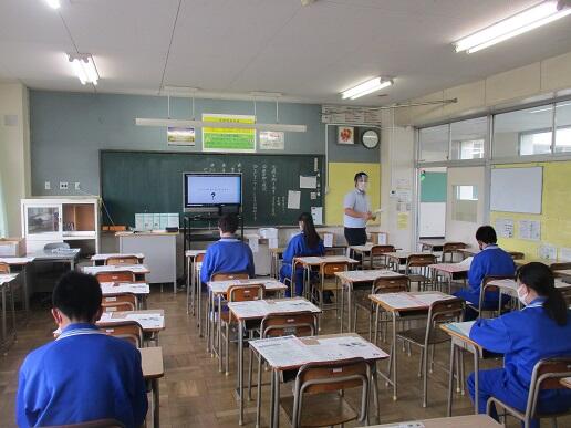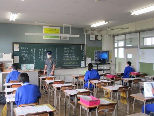 5月26日火曜日です。今日は3年生の課題等配布日です。課題の配布等とあわせて、6月1日からの学校生活について生徒に話をしました。