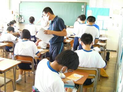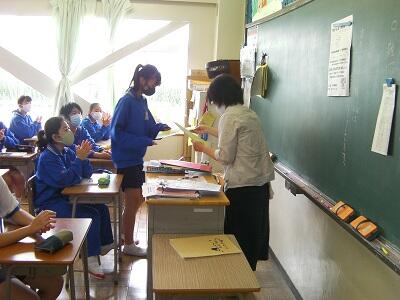 7月31日金曜日、1学期終業式です。体育館に全員が集まることはできないため、代表生徒や先生方が放送室から話し、生徒は各教室で聞く形で終業式を行いました。