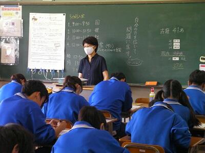 8月31日月曜日です。今日は期末テスト1日目です。学校の様子を紹介します。