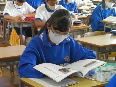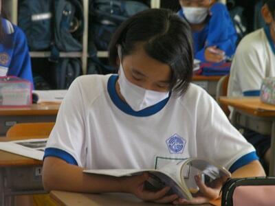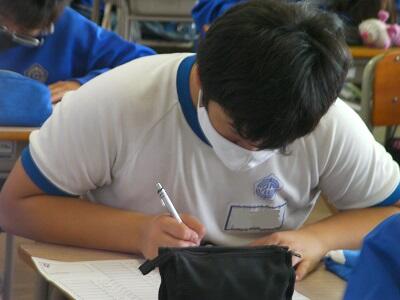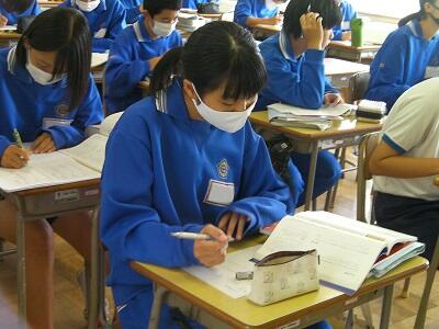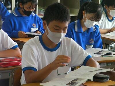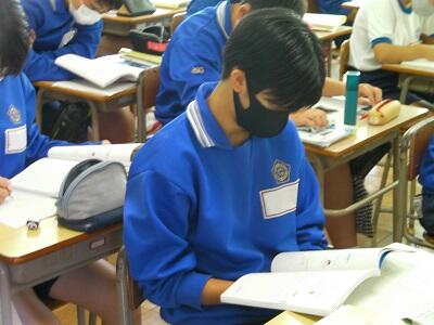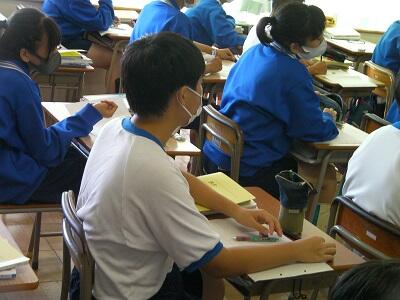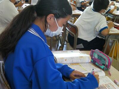 分からない箇所にふせんを貼っている3年生生徒がいました。がんばれ!
