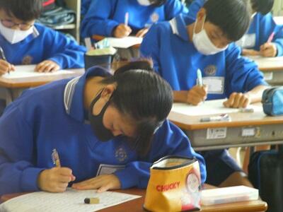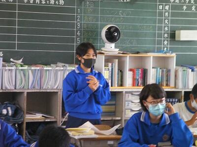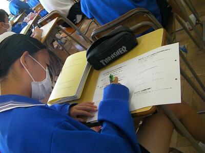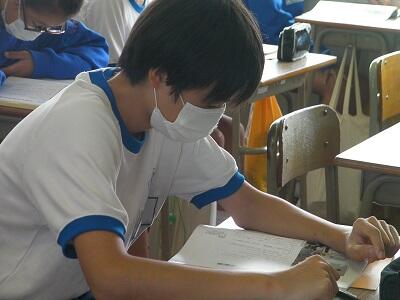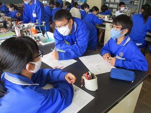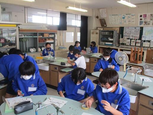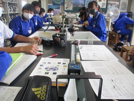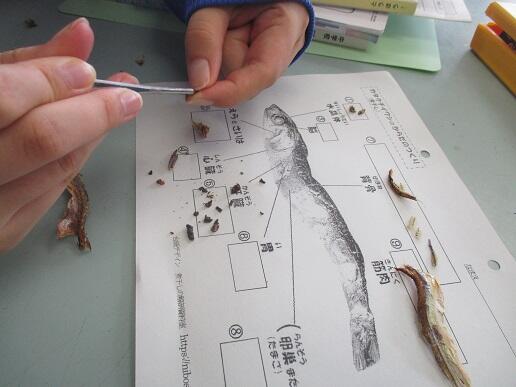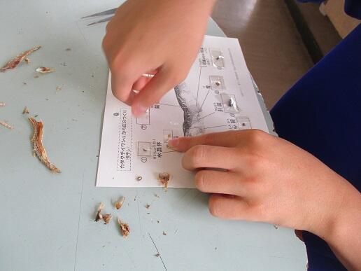 1年生理科です。「カタクチイワシのからだのつくり」について学んでいます。