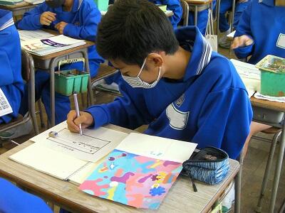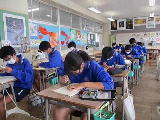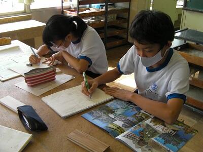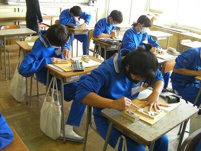 2年生美術です。欄間(らんま)の制作に取り組んでいます。